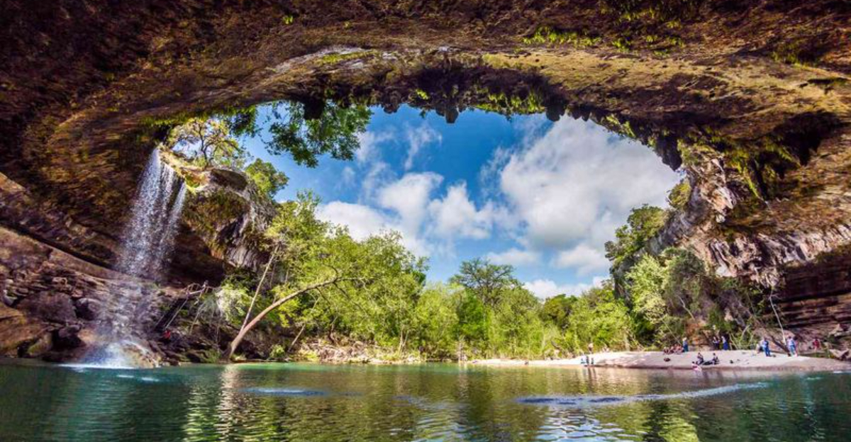 A collapsed grotto created thousands of years ago, Hamilton Pool feels like stepping into another world. Emerald waters collect in a natural limestone basin, while a 50-foot waterfall cascades over mossy rocks.