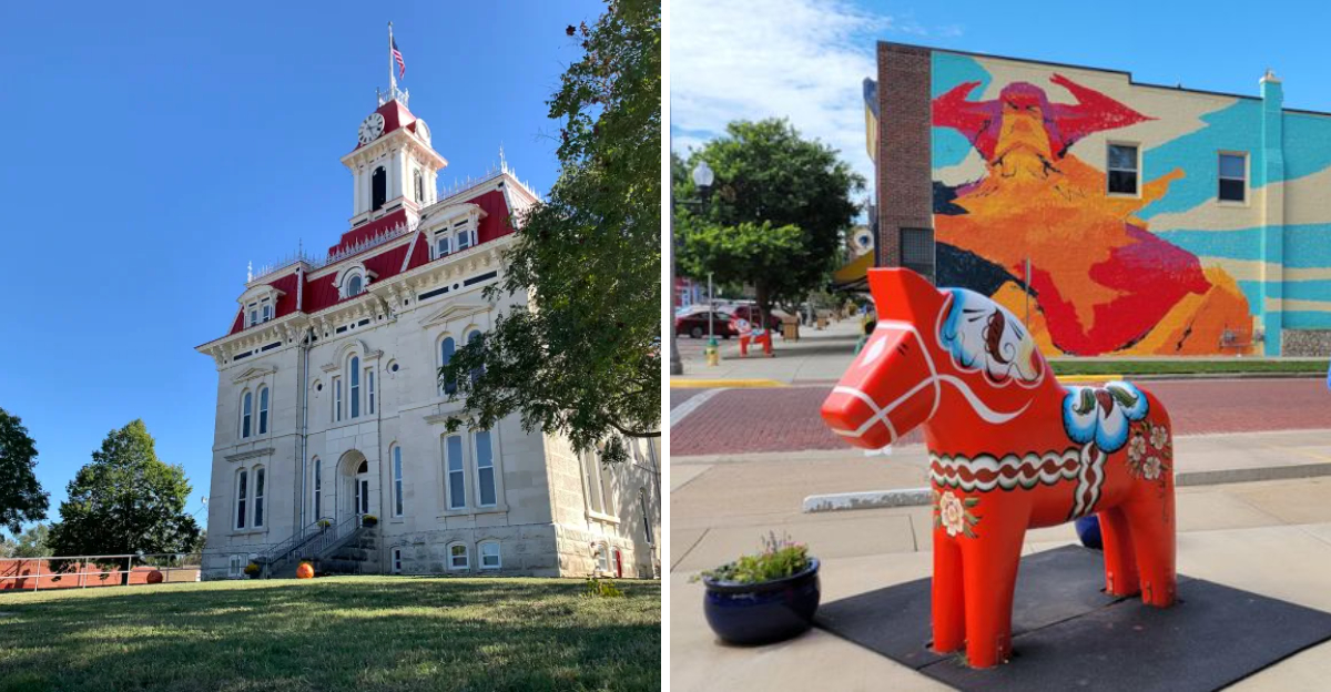 Lindsborg is a slice of Sweden in Kansas, where cultural heritage comes alive with vibrant Dala horse sculptures scattered throughout town. These colorful icons reflect the town’s Swedish roots and charm all who visit.