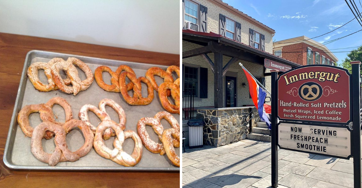 Planning a trip to Pennsylvania’s Amish Country? You absolutely need to stop by Immergut Hand-Rolled Soft Pretzels in Intercourse, Pennsylvania. Every pretzel here is made fresh to order, hand-rolled with care, and baked to golden perfection. Since 1998, this family-owned bakery has been serving up soft, buttery pretzels that locals and travelers can’t get enough of – and once you try one, you’ll understand why.