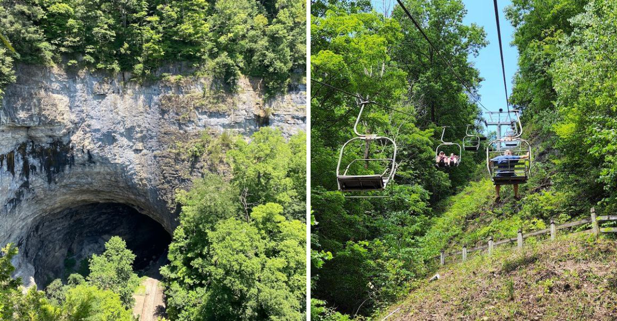 Park staff can send strollers down ahead of you on the lift, which is a genuinely thoughtful touch. Going up after your tunnel visit, the forested ridgelines of Southwest Virginia unfold around you like a living painting.