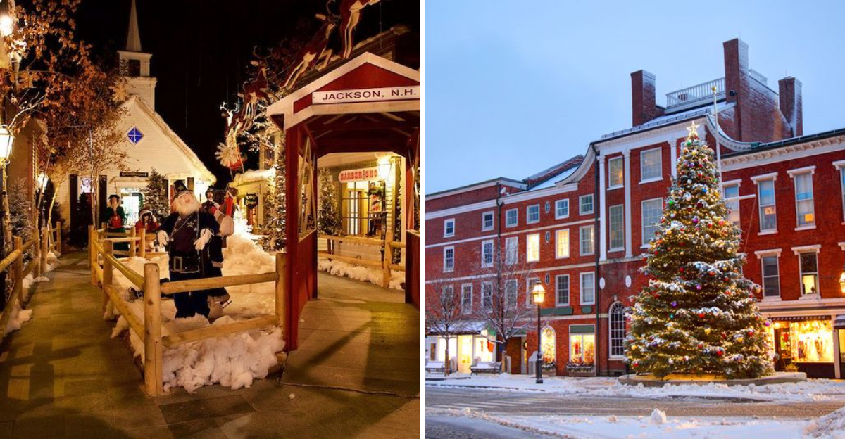 Known as the “Oldest Summer Resort in America,” Wolfeboro transforms into a winter wonderland during the holidays. Situated by the lake, this village offers a serene escape with snow-covered cottages and a frozen lake.