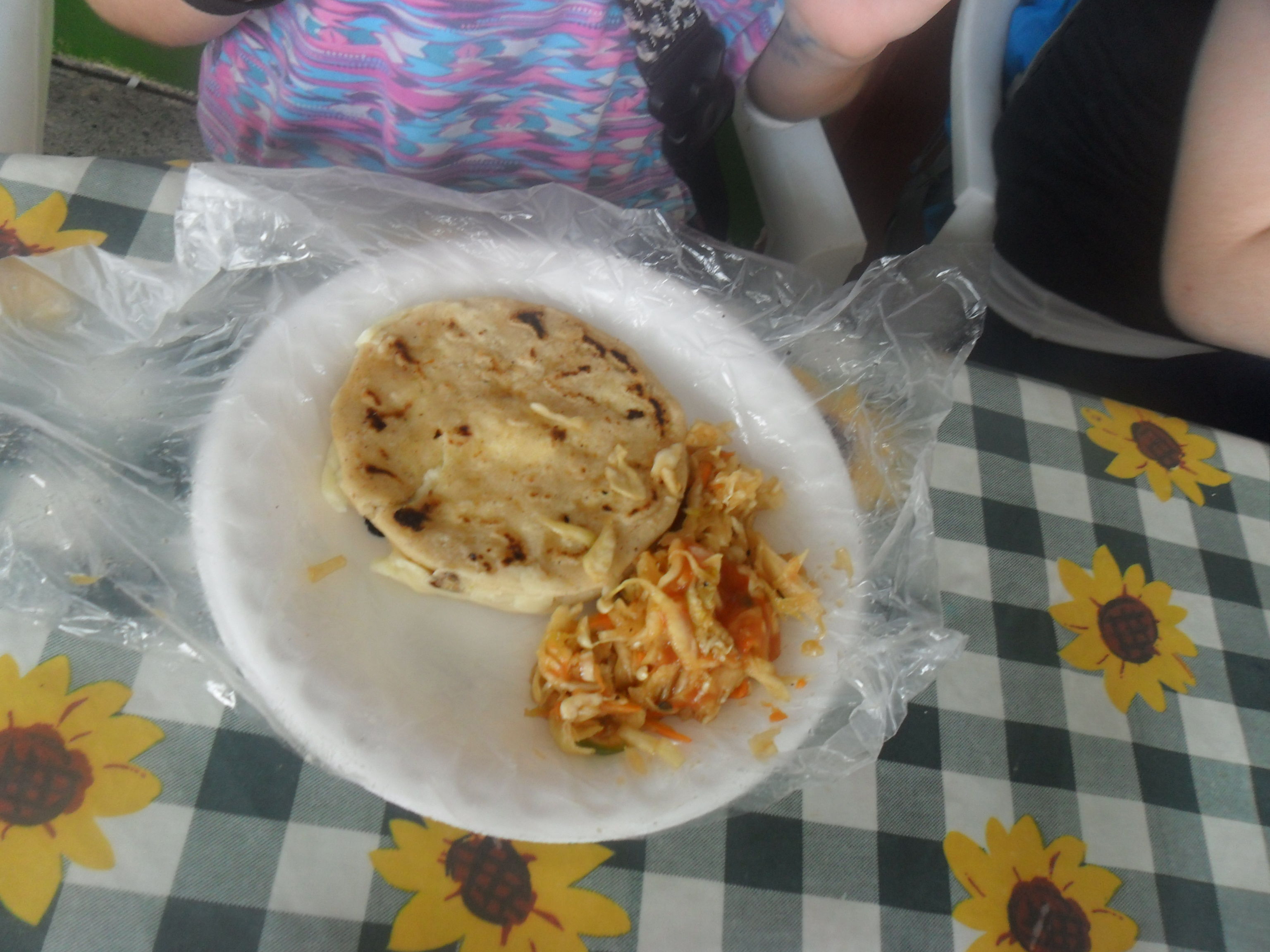 The food in El Salvador is delicious. Most of what they eat is beans, rice, eggs, and bread. However they are most famous for their pupusas. Pupusas are beans, cheese, and sometimes meat and vegetables wrapped in corn tortillas and pressed to where it resembles a Mexican quesadilla. Along with fried plantains, papusas are my absolute favorite food in El Salvador.