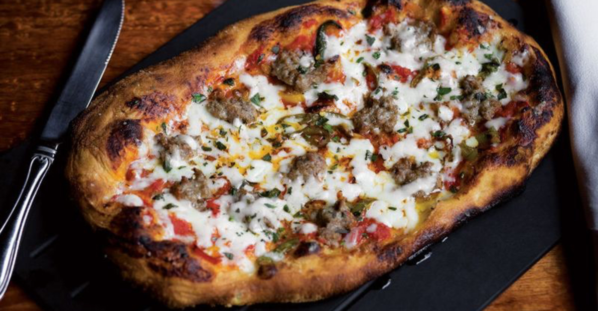 Each pizza starts with naturally leavened dough, left to rise until it’s tangy and airy. The wood-fired oven gives the crust a blistered finish, while toppings like house-pulled mozzarella, fennel sausage, and seasonal vegetables showcase local bounty. Pies arrive at the table with a simplicity that feels almost old-fashioned.