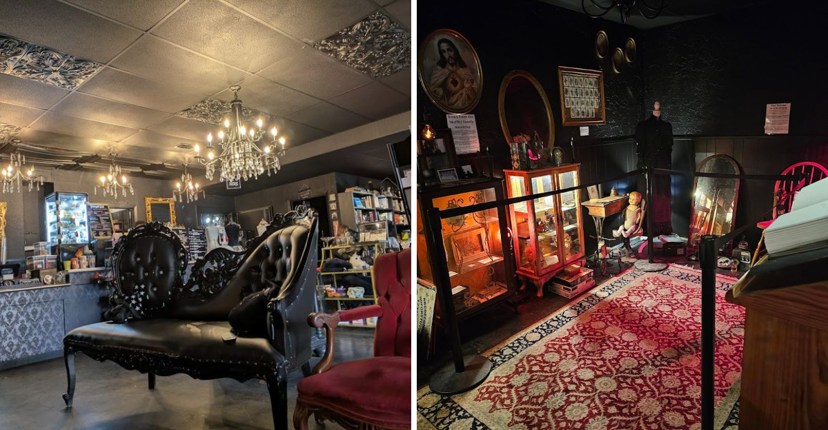 Tucked inside Triple Six Social is one of its most talked-about surprises: a small paranormal museum that stops first-time visitors in their tracks. Glass cases hold haunted objects, antique dolls stare back at you with unsettling calm, and handwritten cards explain the history behind each piece.