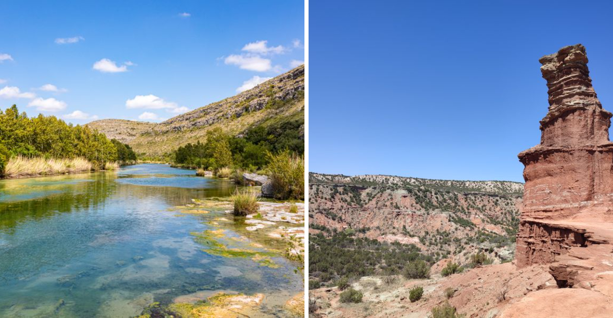 Where the Devil’s River flows through remote canyons in Val Verde County, some of the clearest water in Texas creates pools so transparent you can see every rock on the bottom 15 feet down.