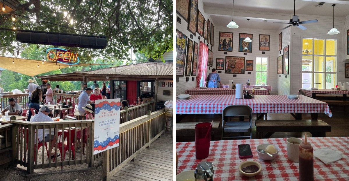 The restaurant itself embraces its rural location with a building that looks right at home among the oaks and limestone. Inside, the vibe stays casual and comfortable, the kind of place where families celebrate birthdays and friends gather after a day spent exploring nearby Dinosaur Valley State Park.