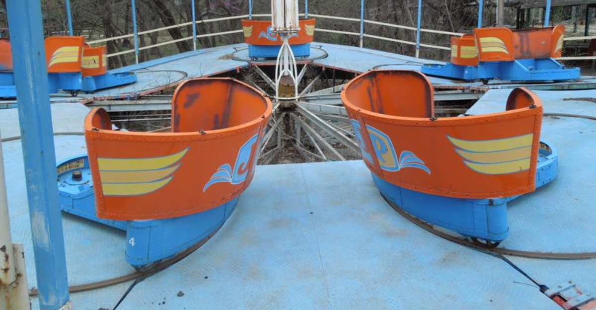Walking past the empty gates, you might notice something unsettling. The old Ferris wheel and roller coaster tracks still creak and groan when Kansas winds blow through them. Metal scrapes against metal in a haunting symphony of abandonment.