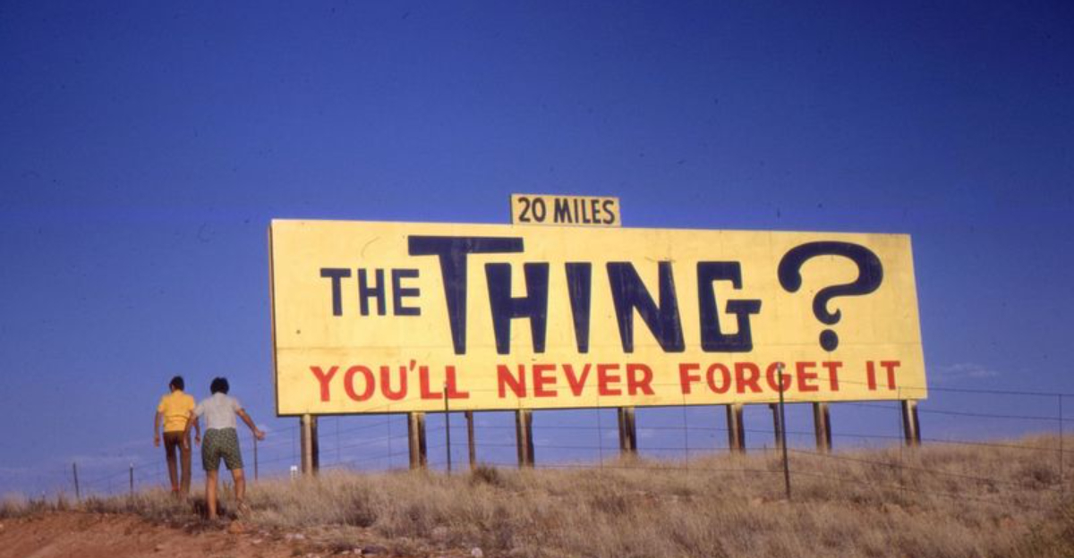 Imagine cruising down the highway, when suddenly, colossal billboards emerge from the desert landscape, beckoning with questions of “What is The Thing?” This surreal sight draws travelers in long before they reach their destination.