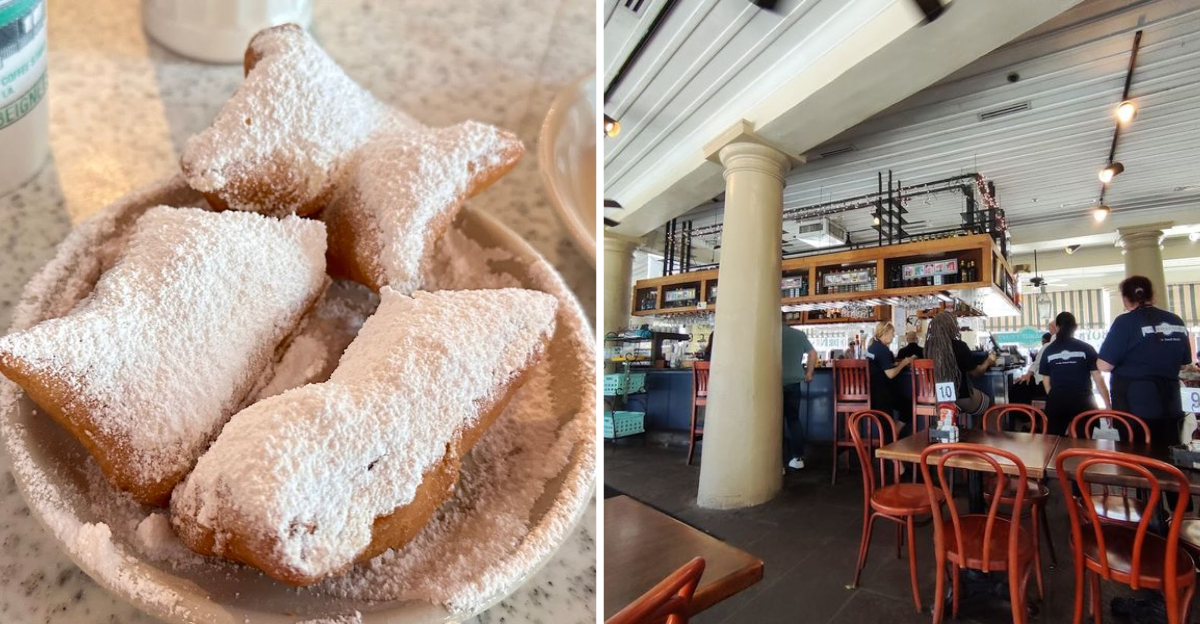 There is a moment when the beignets arrive in front of you and your brain does a quick recalibration. They are golden, pillow-soft, and buried under a snowfall of powdered sugar so generous it almost looks like a joke.