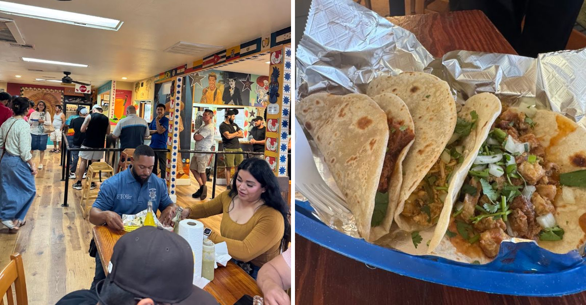 The staff behind the counter work with a rhythm that feels almost choreographed, taking orders, assembling tacos, and keeping conversations going all at once.