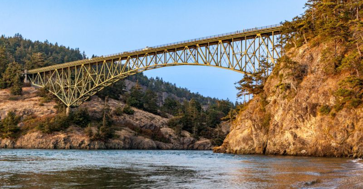 Connecting Whidbey Island to Fidalgo Island, this stunning bridge lives up to its deceptive name. The narrow two-lane structure creates bottlenecks during summer months when tourists stop mid-bridge for photos.