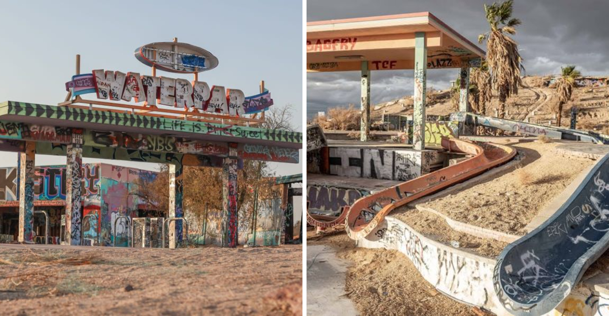 Today, only cracked slides and faded paint remain, whispering stories of wild summers long past. It’s the kind of place that proves adventure never truly disappears; it just hides beneath the desert dust.