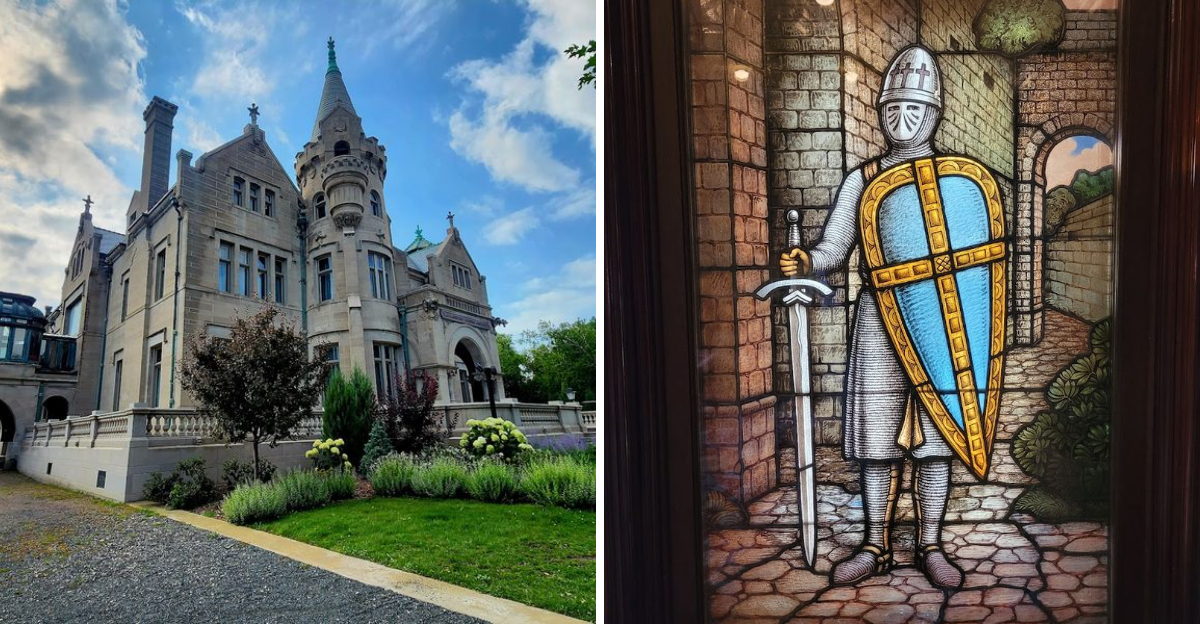 A “castle on the hill” rises above Minnesota like something lifted straight out of a Nordic legend. Stone walls, steep angles, and old-world design give it a presence that feels almost theatrical against the landscape.