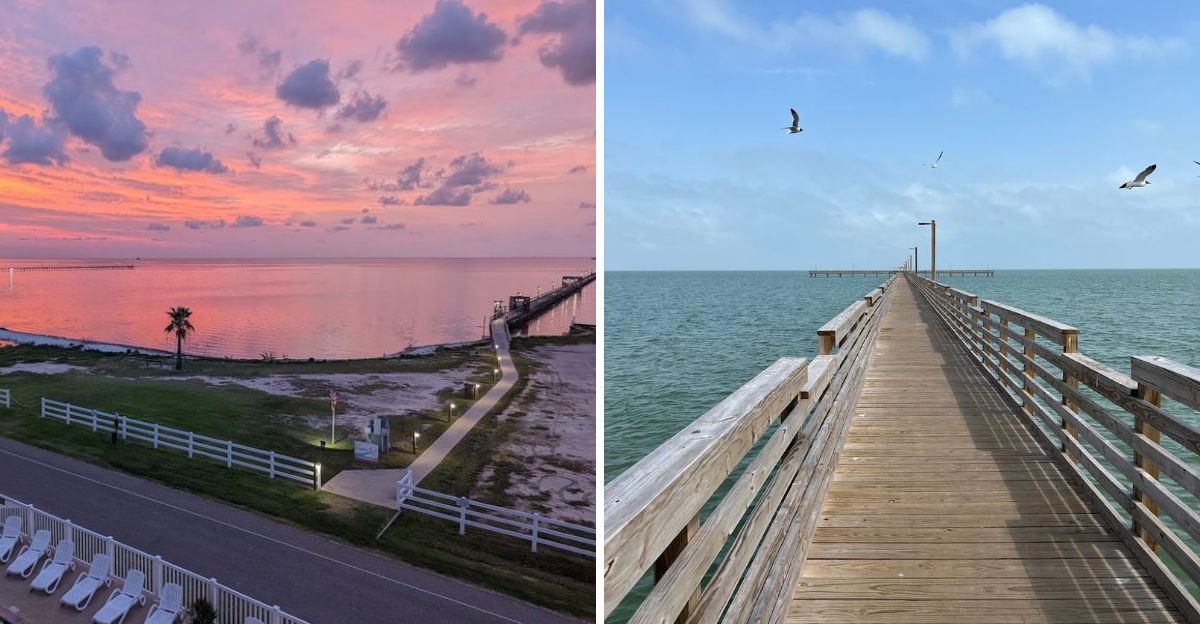The pier stretches out over Aransas Bay like it has always belonged there, connecting the town to the open water in the most unhurried way possible. Pelicans glide overhead, fishing lines dip into the glassy bay, and somewhere nearby, the smell of fresh seafood drifts over from a local restaurant.