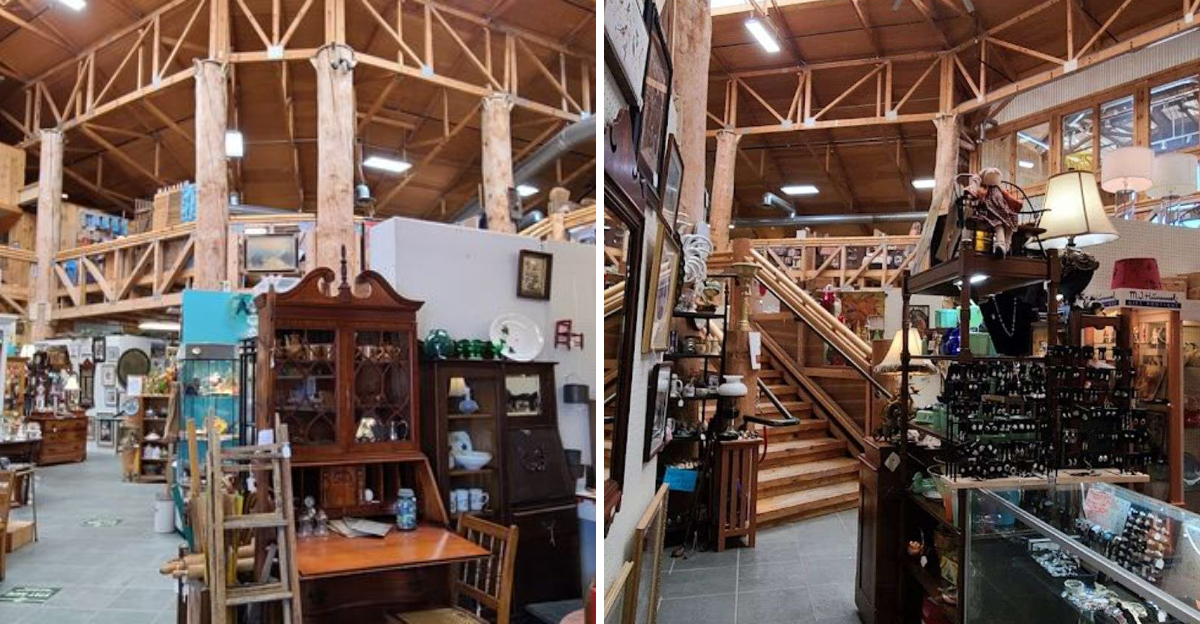Furniture hunters will find solid pieces ranging from ornate Victorian cabinets to sleek mid-century credenzas. Collectors chasing smaller treasures can browse through vintage jewelry, antique clocks, art prints, stained glass panels, and decorative lighting.