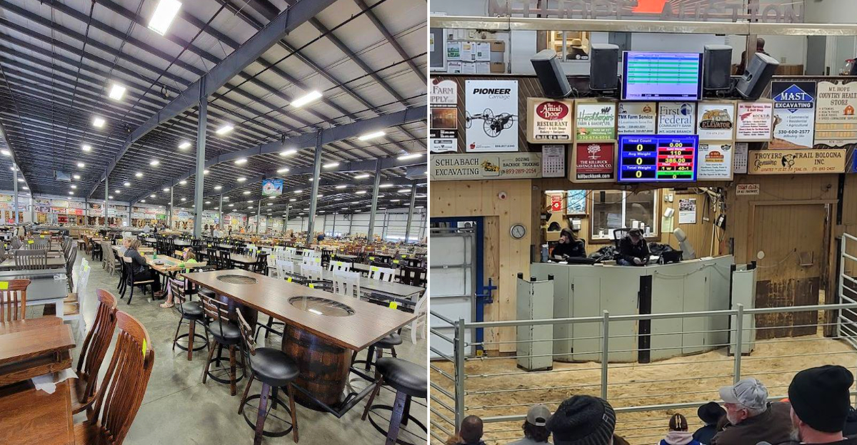 A wooden paddle in your hand, a crowd of Amish farmers around you, and the chant of an auctioneer filling the air. That is the scene at this expansive Ohio auction house, where tradition, bidding, and wholesale prices span thousands of square feet.