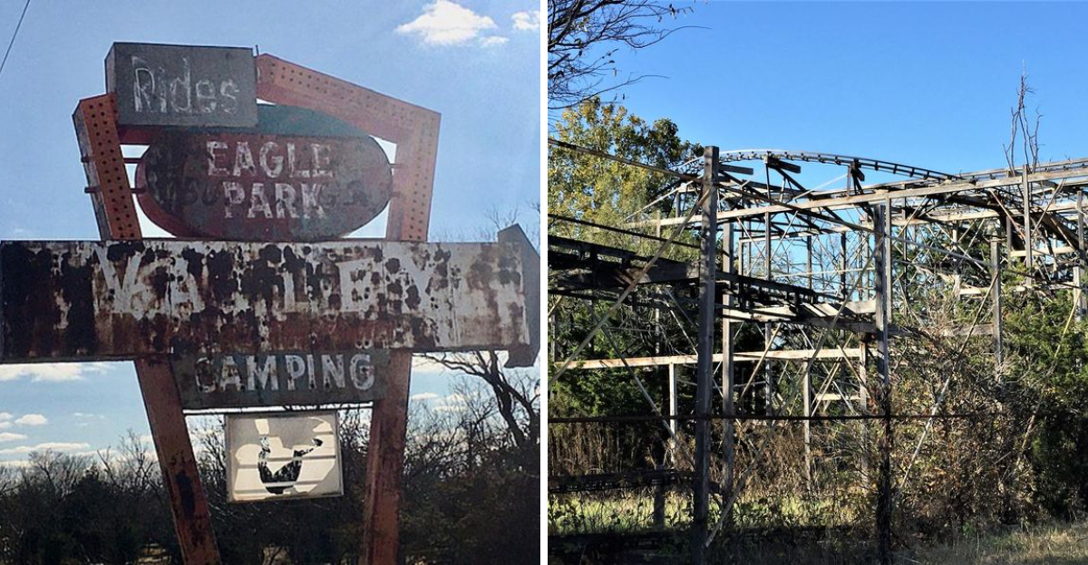 Deep in the heart of Oklahoma, near the small town of Cache, there’s a tale that sounds like it came straight out of a storybook. Eagle Park, a forgotten highway theme park, is said to mysteriously appear after lightning strikes light up the sky.