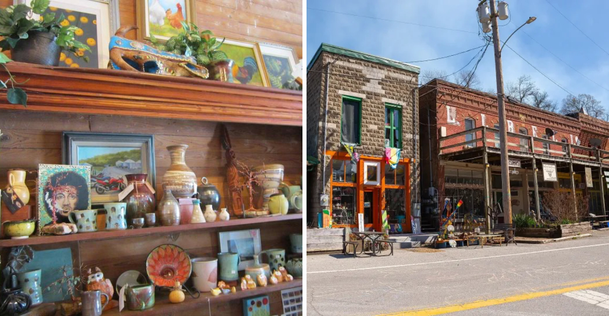 The boardwalk stands a short drive from Giant City State Park and other Shawnee National Forest trailheads. That proximity shapes the day, since you can split time between studio browsing and sandstone overlooks. The transition from forest to storefront is a highlight.