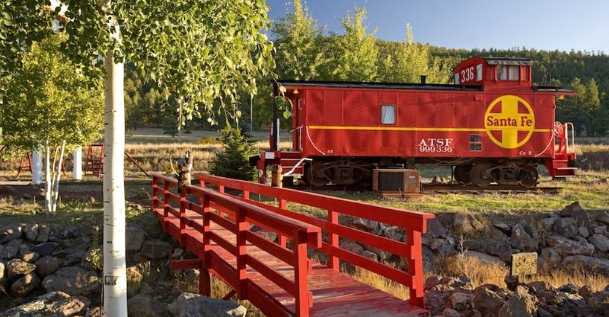 In Williams, a hillside motel and RV park preserves real railcars as suites, letting travelers sleep inside history under tall pines.