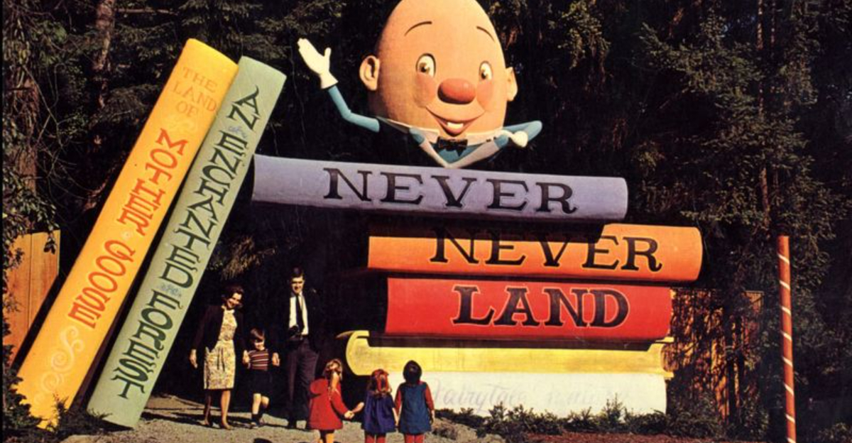 Never Never Land once stood as a beacon of childhood fantasies in Tacoma. Here, characters from beloved fairy tales seemed to leap from pages into reality. The park’s sculptures, crafted with whimsy, dotted the forest paths, inviting young minds to explore.