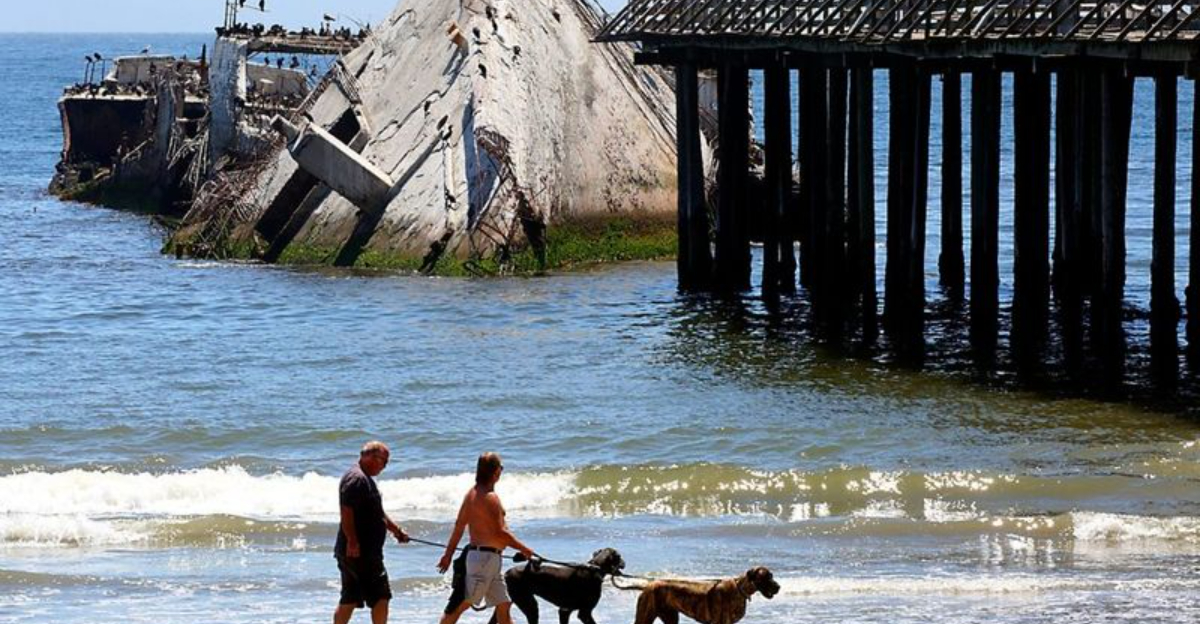 Off the coast of Aptos, California, a strange concrete skeleton juts from the waves at Seacliff State Beach.
