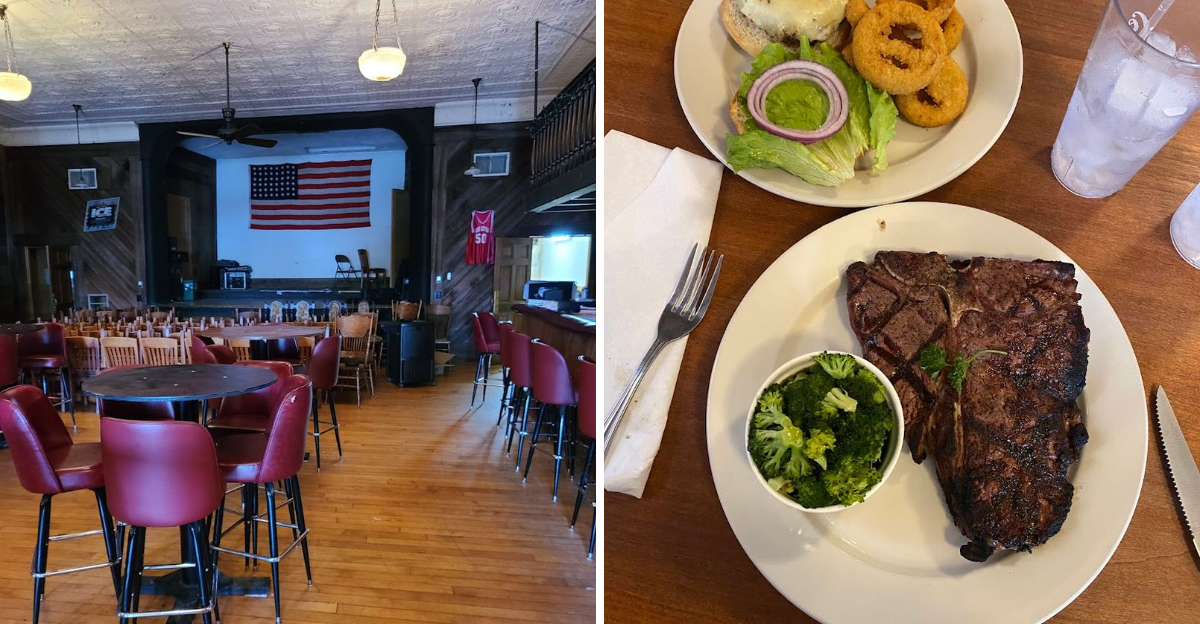 There are steakhouses, and then there are places that feel like they carry the weight of an entire town’s story in their walls. One spot in Aurora, Indiana is exactly the second kind.