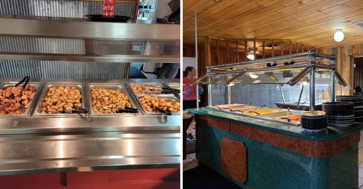 While catfish leads the menu, the buffet often includes shrimp, frog legs, and occasional items like buffalo ribs or quail, which locals mention in recent reviews. Availability can vary by day and crowd size, so treat these as rotating highlights rather than guaranteed fixtures.