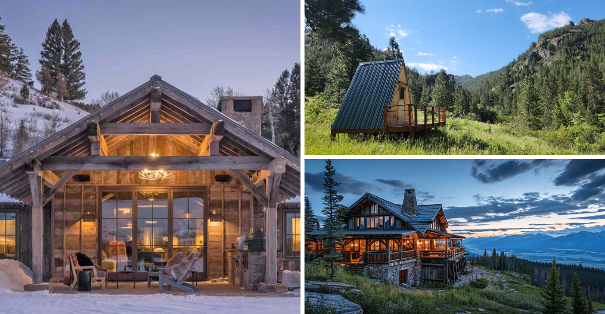 In Montana, some lodges are designed to harmonize with their surroundings, using natural resources and materials. Wooden beams and stone fireplaces link these cabins to the earth, while large windows frame the ever-changing panorama.