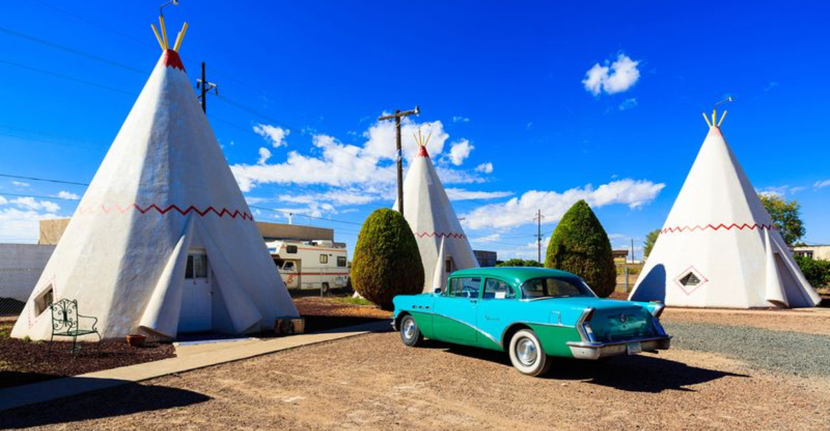 The setting puts you near iconic Arizona stretches of the Mother Road, with signage, alignments, and roadside markers that tell a broader national story. What sets this motel apart is that history is embedded in the architecture itself, the teepee rooms inviting you to experience preservation through use.