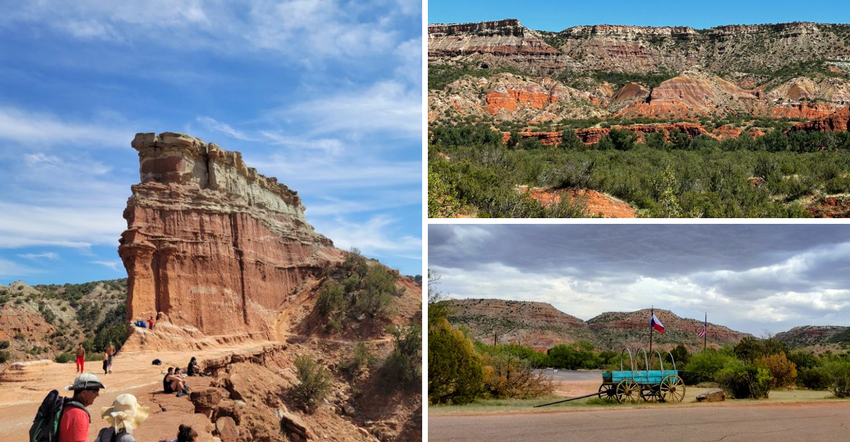Palo Duro Canyon State Park sits just south of Amarillo in Canyon, TX 79015, where the flat Texas Panhandle suddenly drops away into a breathtaking chasm of red rock cliffs, juniper-dotted mesas, and 800-foot canyon walls.