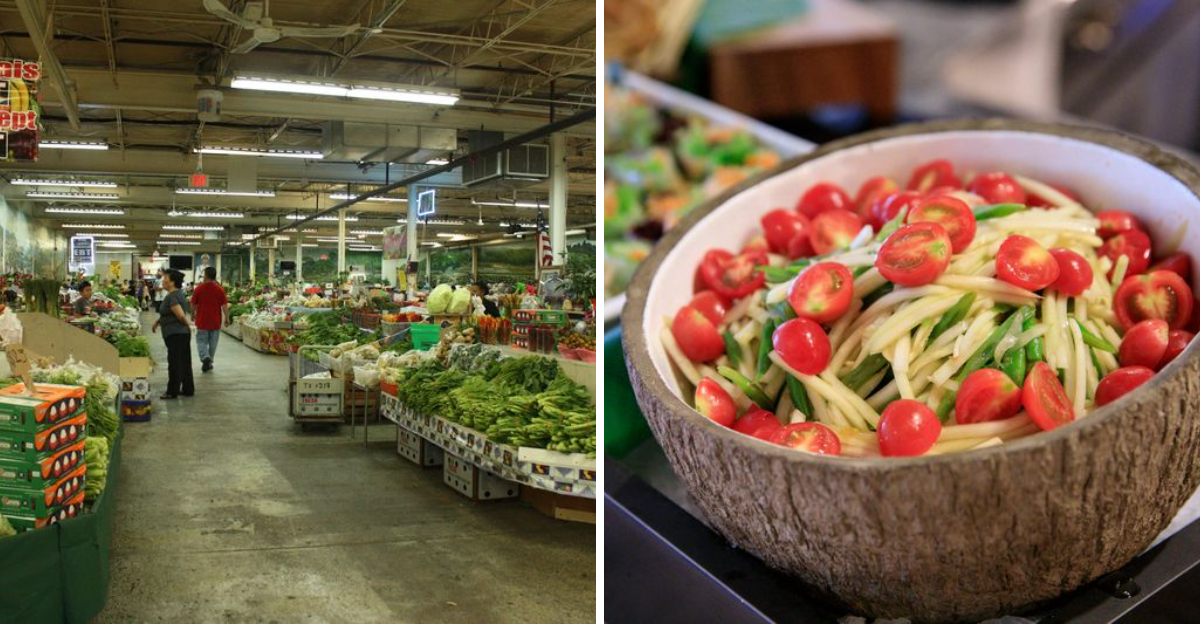 Tucked inside it all, you’ll find papaya salad that people swear is some of the best in America. Bright, crunchy, spicy, and perfectly balanced, it hits with that fresh, sharp kick that keeps you going back for another bite.