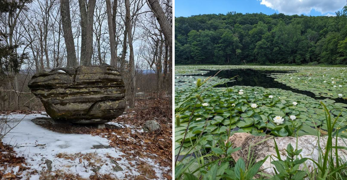 When you first see the glacial erratic along the Blue Trail, your brain takes a second to process it. This boulder is the size of a small house, just sitting there in the middle of the forest like it was dropped from the sky.