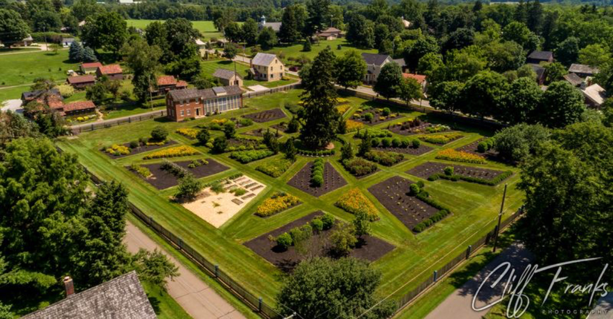 The Zoar Garden retains its geometric order even when frost settles into every line.