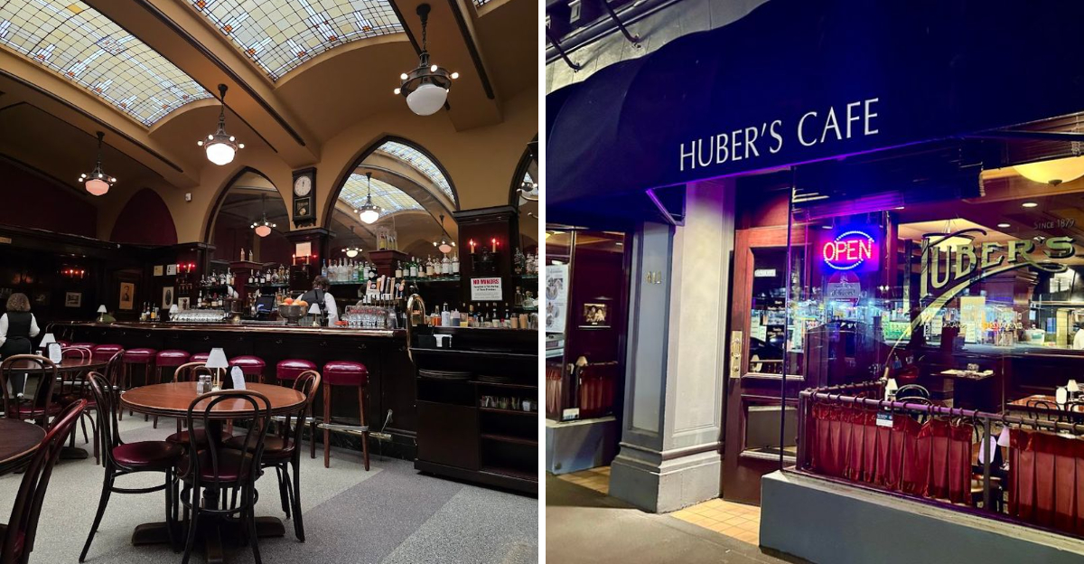 Happy hour at Huber’s runs every single day. That alone sets it apart from most downtown Portland spots.