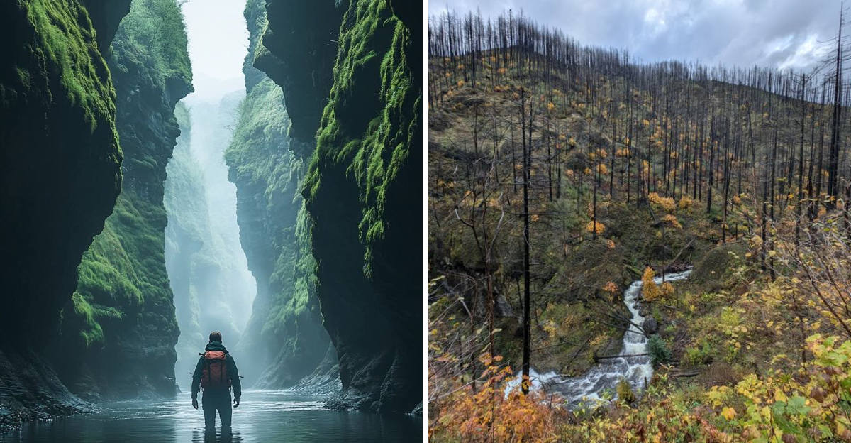 You come to Oneonta Gorge for the way Oregon feels alive in the mist, and you stay because the canyon keeps revealing new textures with every step.