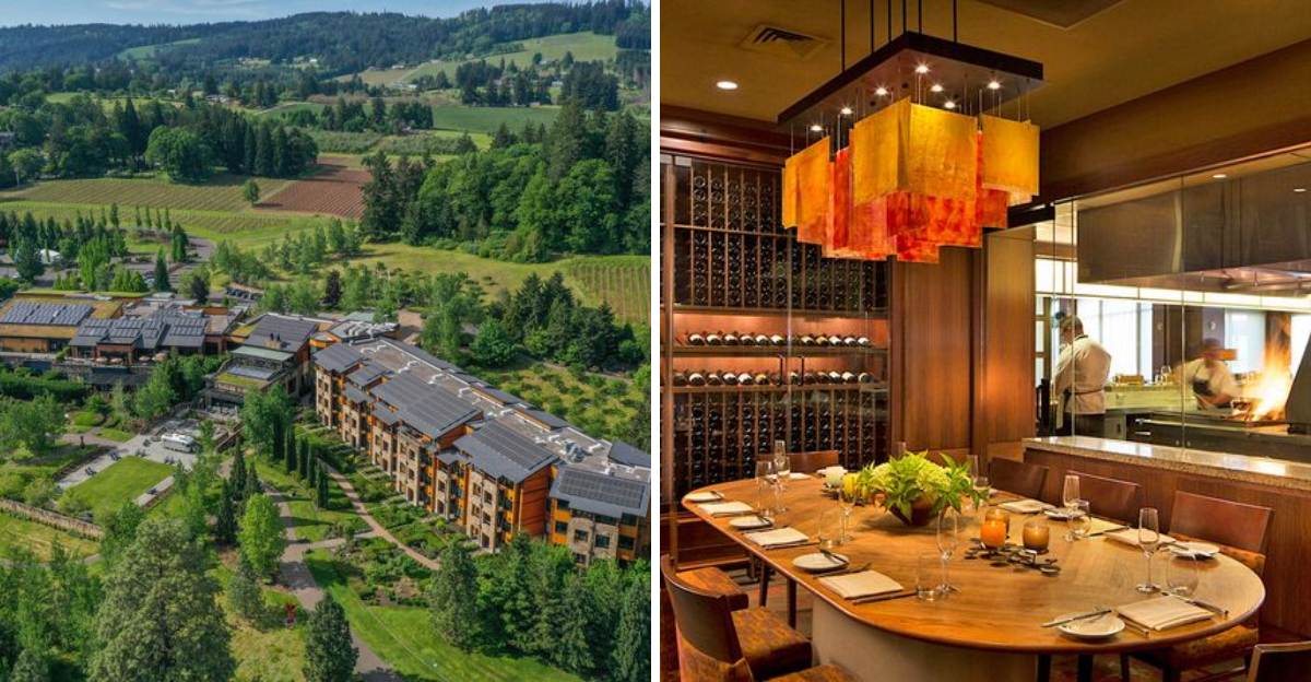 Jory Restaurant at The Allison Inn & Spa offers an ambiance that truly defines the season. The architecture harmonizes with the landscape, creating a seamless transition between indoors and outdoors.