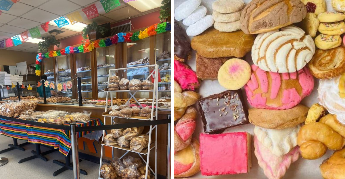 Glass cases line the counter, filled with rows of sweet breads in every shape and color you could imagine. Conchas, empanadas, buñuelos, cookies, and more are all waiting patiently for someone to pick them out.