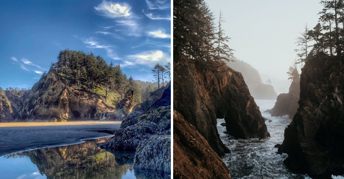 Find it at Hug Point State Recreation Site, Address, Cannon Beach, Oregon, a short drive south of town.