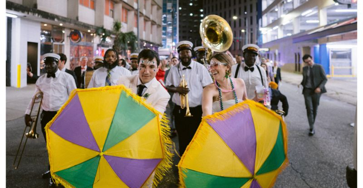 Nothing says New Orleans quite like a second line parade. Brass bands lead the way while dancers follow behind, twirling umbrellas and handkerchiefs in spontaneous celebration.