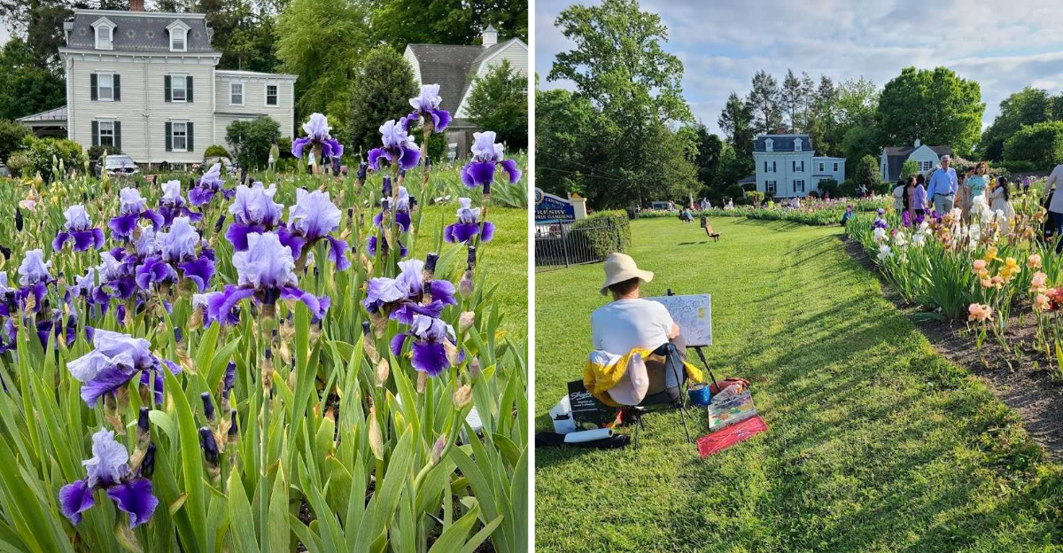 Walking through the 30-plus labeled beds here feels less like visiting a garden and more like flipping through the world’s most colorful encyclopedia. Around 3,000 distinct iris varieties grow across the grounds, ranging from soft lavender whispers to deep, almost-black burgundy blooms that stop you mid-step.