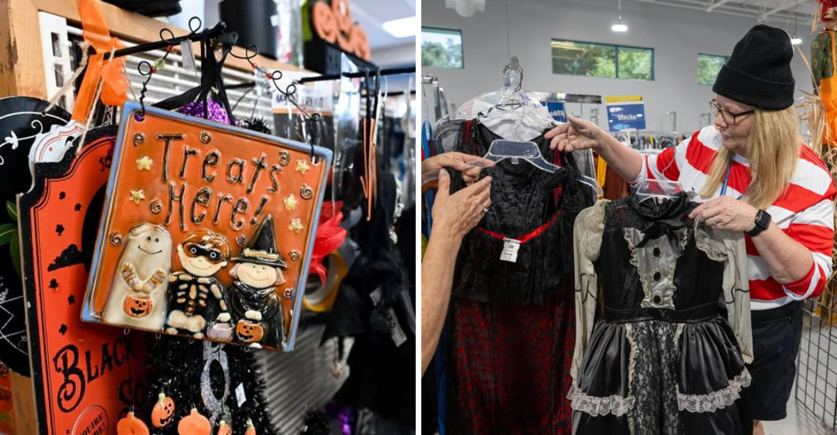 You’ll find everything from retro jackets and lace blouses to funky hats and costume jewelry that can transform any outfit. The store’s layout makes browsing easy, with seasonal items often highlighted in themed displays. During October, expect to see shelves stocked with eerie props, masks, and even gently used costumes ready for a second life.