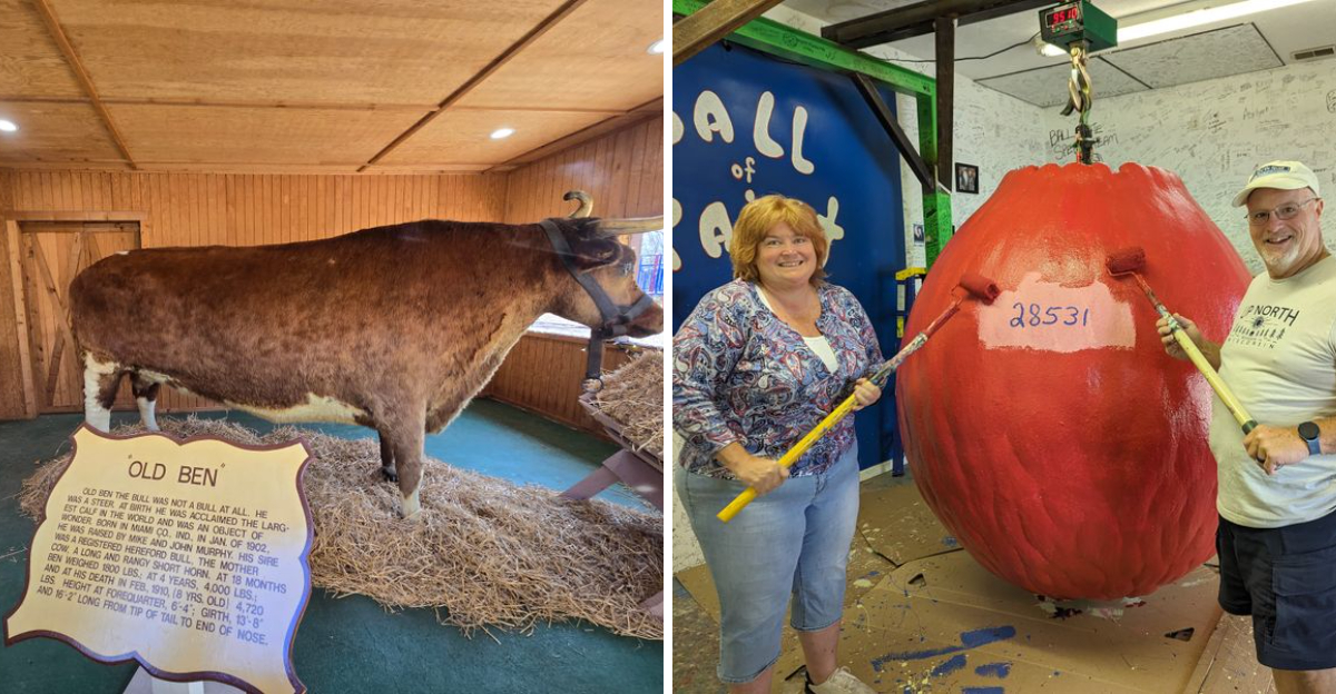 This odd couple of natural and agricultural history sits together in a small building, creating one of the strangest indoor attractions you’ll find along any backroad.