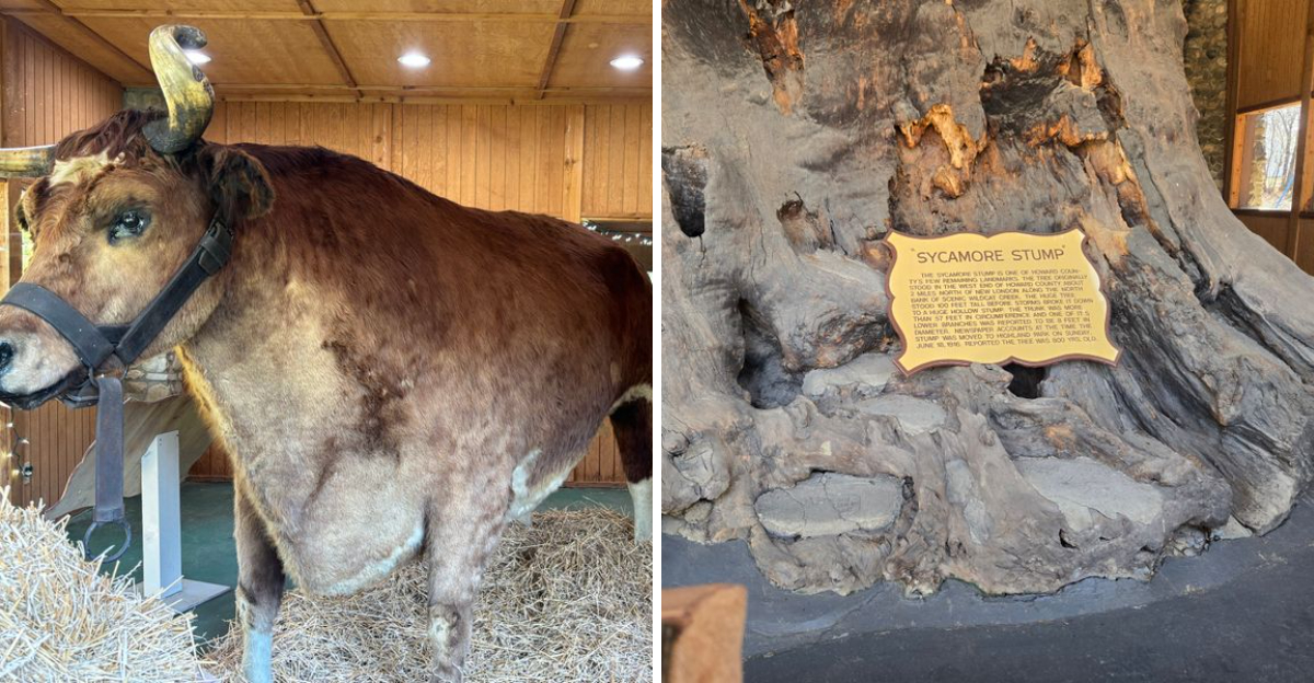 Today, he shares his display space with another Indiana marvel, the World’s Largest Sycamore Stump, creating a unique double attraction that celebrates the natural and agricultural wonders of the region.
