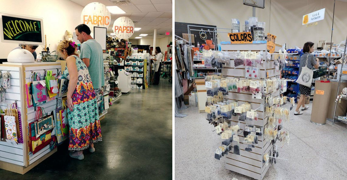 In Texas, creative spaces like this give artists access to affordable supplies while encouraging a spirit of reuse and experimentation. Shelves are filled with everything from fabric and beads to paints, paper, and unusual craft materials waiting for a second life.
