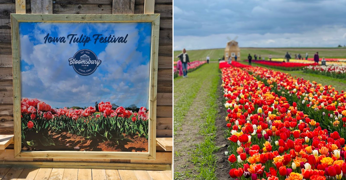 Want a spring day in Iowa that looks like someone spilled a paint box across the countryside? Bloomsbury Farm’s Tulip Festival turns a regular drive into a colorful escape, because the fields light up with rows of blooms that make you stop and stare.