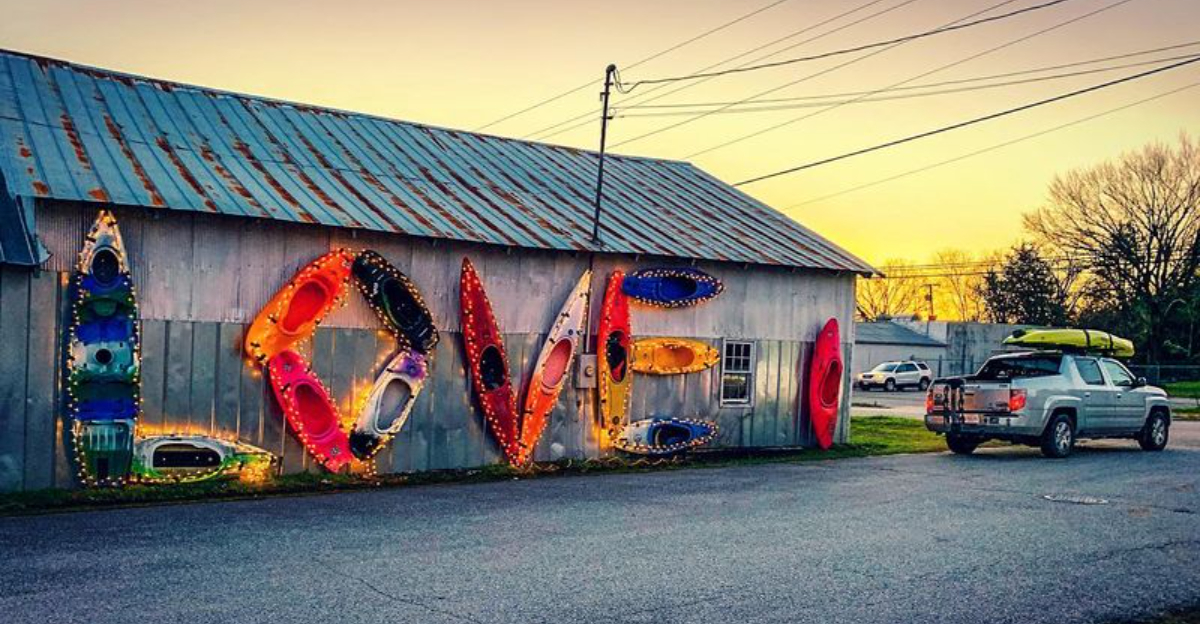 Farmville may be a small town, but its LOVEwork installation punches well above its weight. Sitting proudly on Main Street, this sign was constructed entirely from retired whitewater and recreational kayaks, stacked and bolted together into four bold letters that practically beg to be photographed.