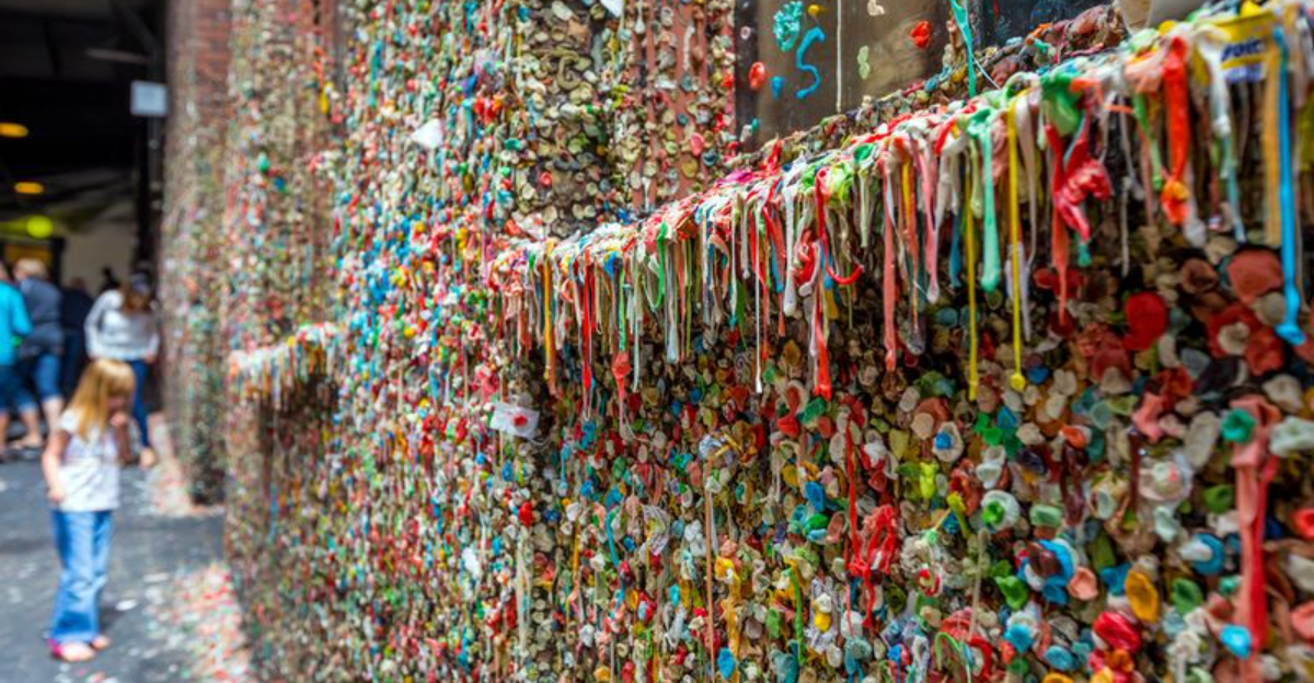 Under Pike Place Market lurks one of Seattle’s stickiest attractions. Post Alley’s brick wall has been covered in chewed gum since the early 1990s, when theater patrons started sticking their gum there while waiting in line. What began as minor vandalism transformed into a colorful, albeit unhygienic, tourist destination.