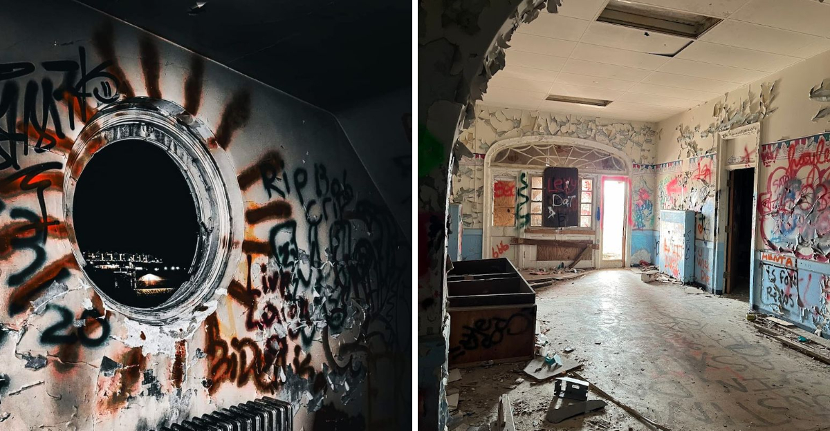 Rooms that once held patients now hold only graffiti, broken furniture, and the occasional unsettling find left behind by previous visitors. Every corner seems to hide another layer of the facility’s complicated past.