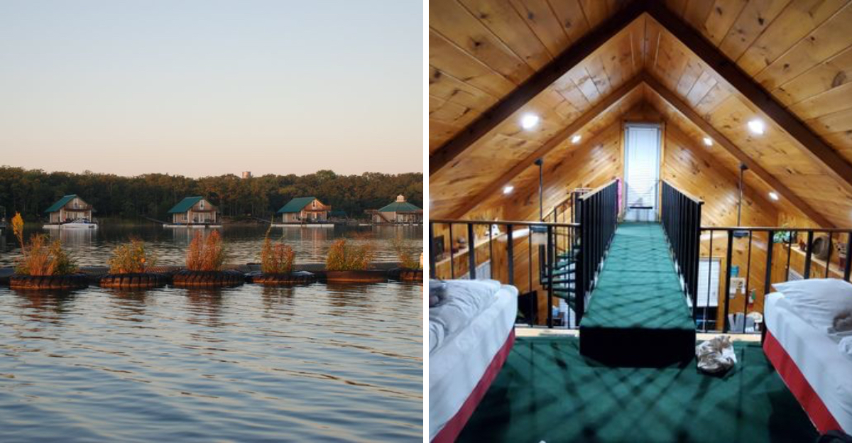 Lake Murray Floating Cabins sit right on the water at Lake Murray State Park near Ardmore, and they offer something most hotels never could: the chance to sleep directly above the lake itself.