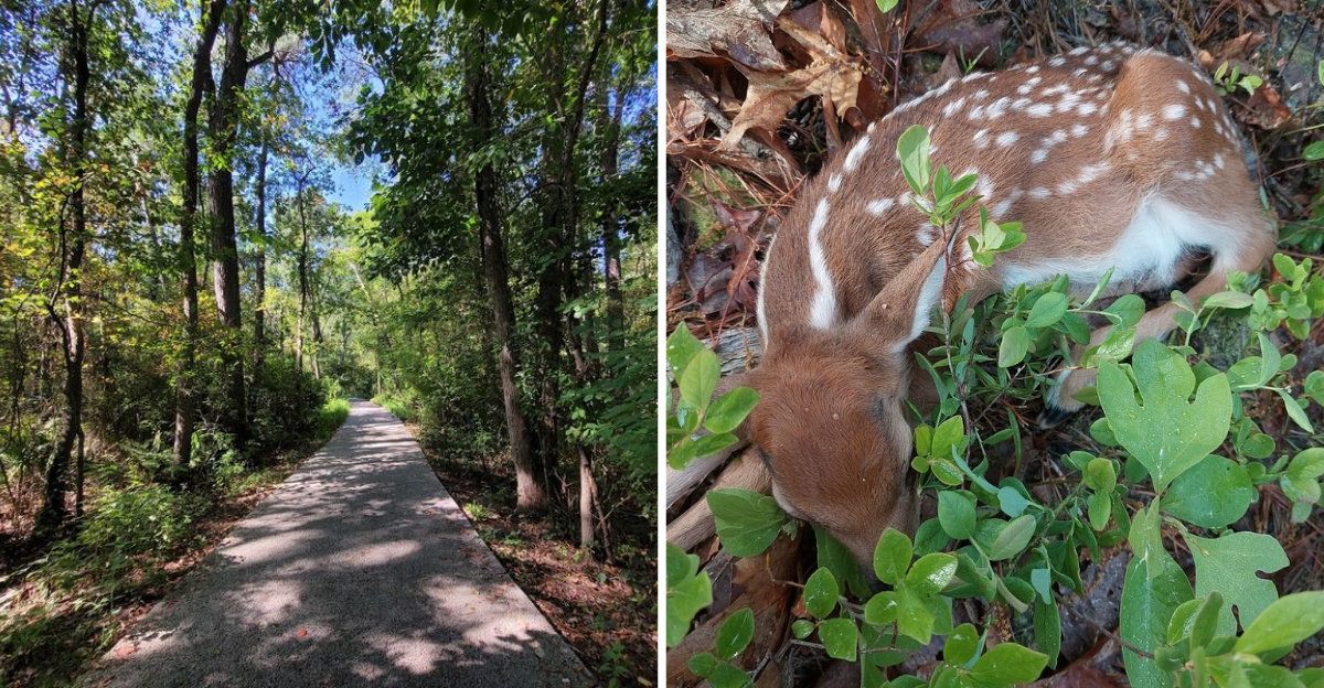 Step off the main paved loop onto one of the smaller dirt side trails and the whole atmosphere shifts. The canopy thickens, the sounds of nearby roads disappear, and the forest takes over completely.